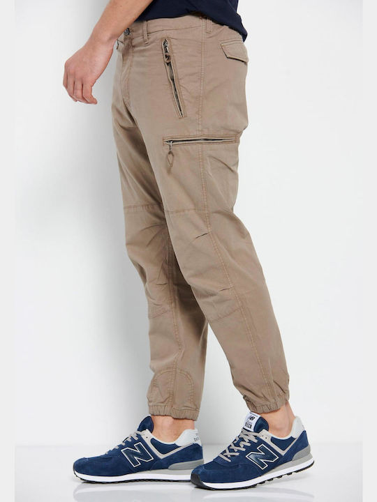 Ανδρικό παντελόνι cargo της εταιρίας Funky Buddha σε μπεζ χρώμα με πλαϊνές τσέπες για casual εμφανίσεις.