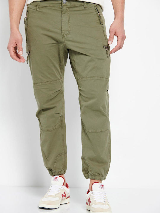Ανδρικό παντελόνι cargo της εταιρίας Funky Buddha σε χακί χρώμα με πλαϊνές τσέπες για casual εμφανίσεις.