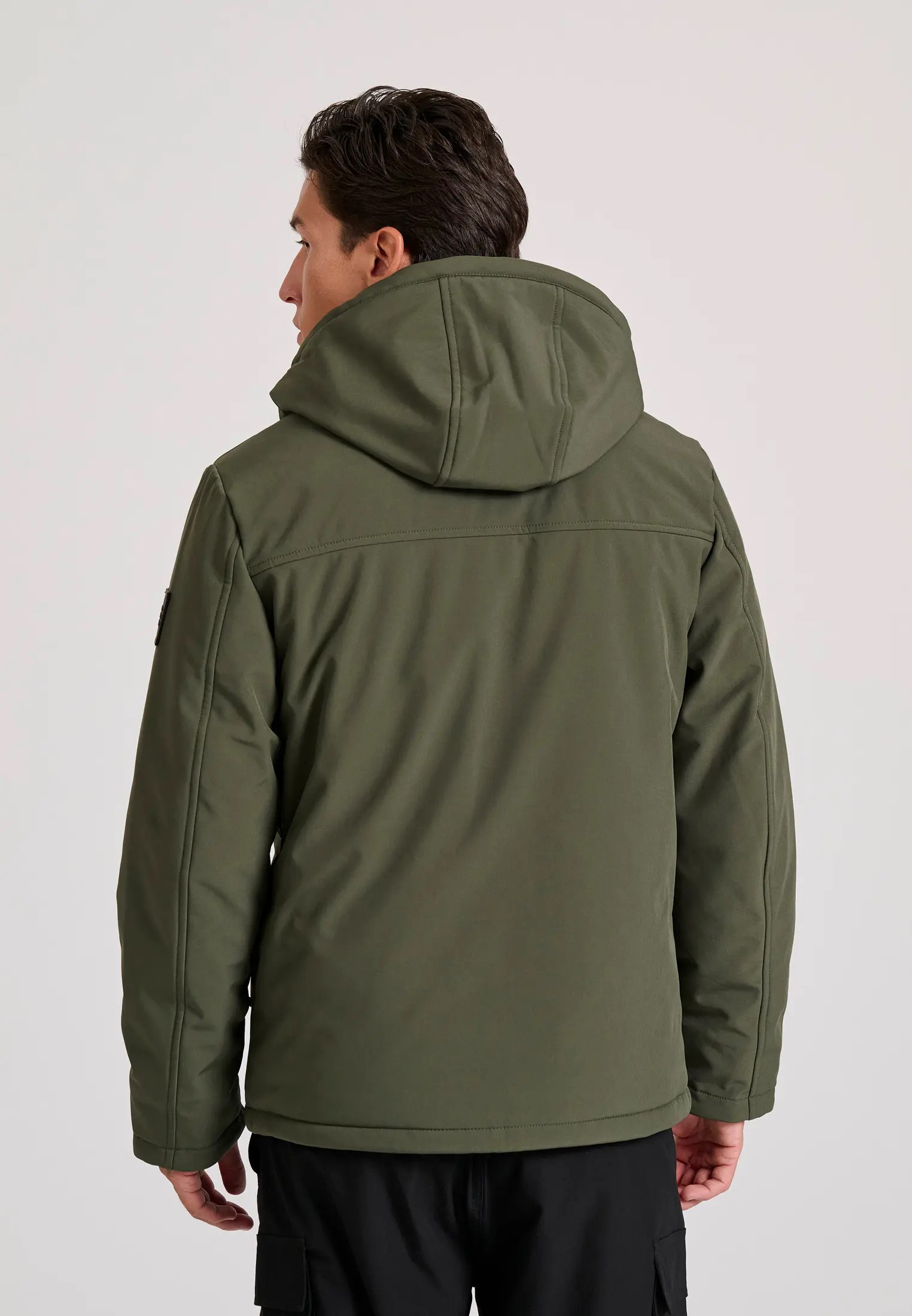 Ανδρικό μπουφάν της εταιρίας Funky Buddha σε πράσινο χρώμα από άνετο, ελαφρύ, διαπνέον ύφασμα, κατάλληλο για αντίξοες καιρικές συνθήκες. Κατασκευασμένο από ειδικό υλικό που αντέχει στον αέρα και στη βροχή. Με εσωτερική επένδυση για περισσότερη ζέστη. Διαθέτει κουκούλα για περισσότερη προστασία. Ιδανικό για τους χειμερινούς μήνες.