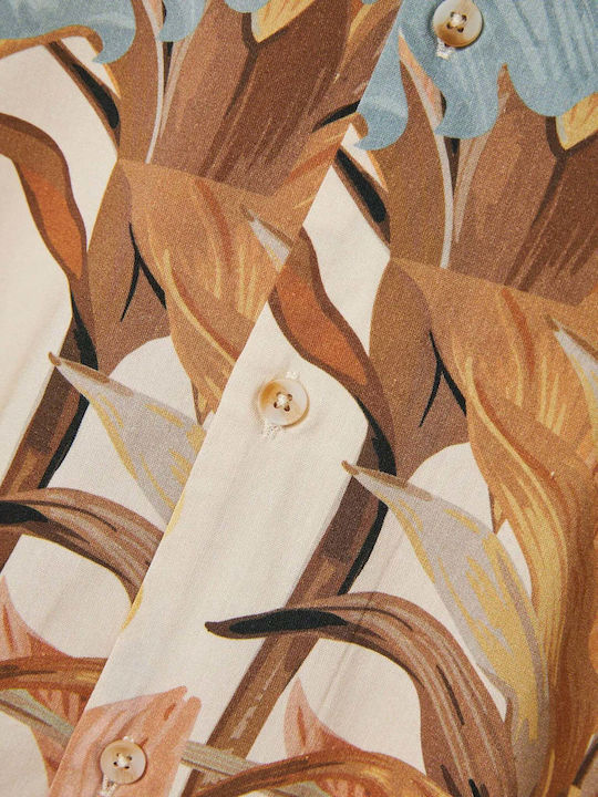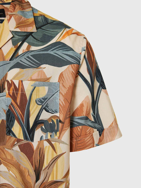 Ανδρικό πουκάμισο της εταιρίας Funky Buddha σε μπεζ χρώμα με κοντό μανίκι.