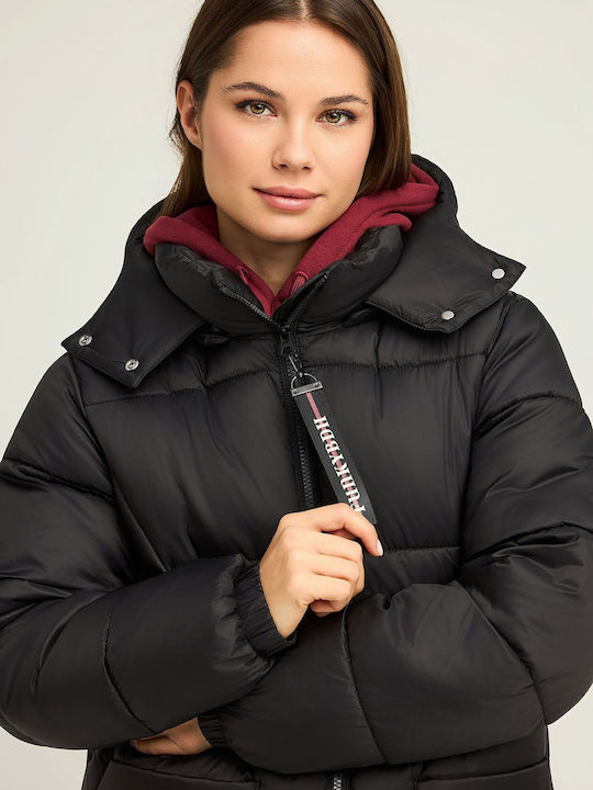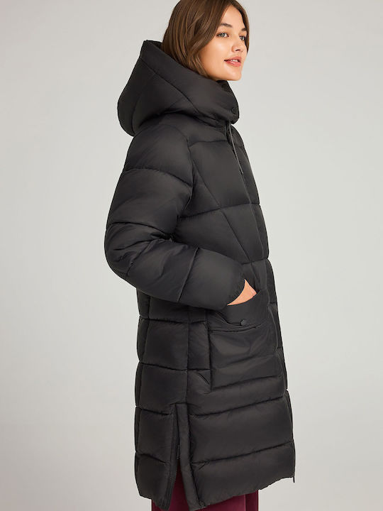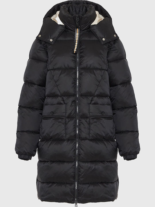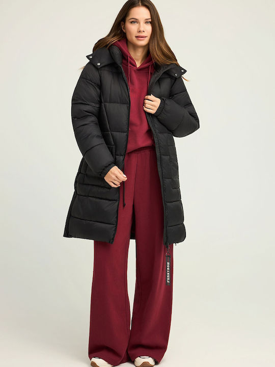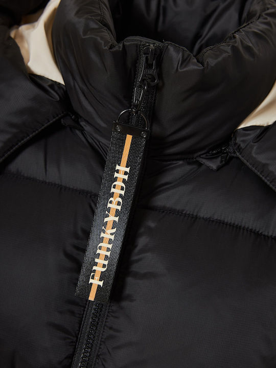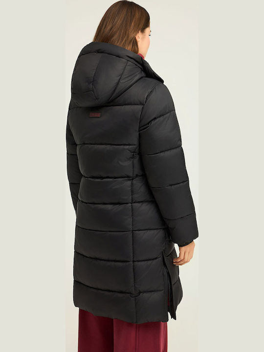 Funky Buddha Long Puffer Jacket for Winter with Hood Black FBL012-107-01