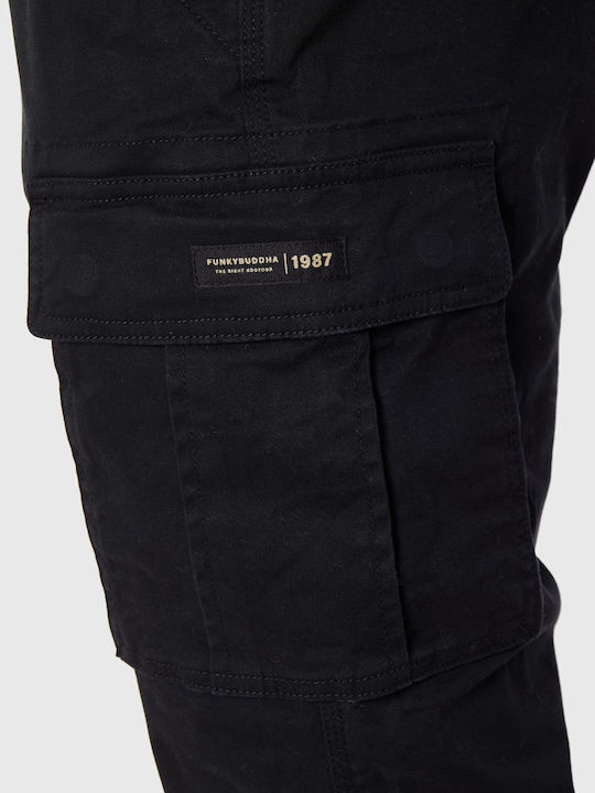 Ανδρικό παντελόνι cargo της εταιρίας Funky Buddha σε μαύρο χρώμα με πλαϊνές τσέπες για casual εμφανίσεις.