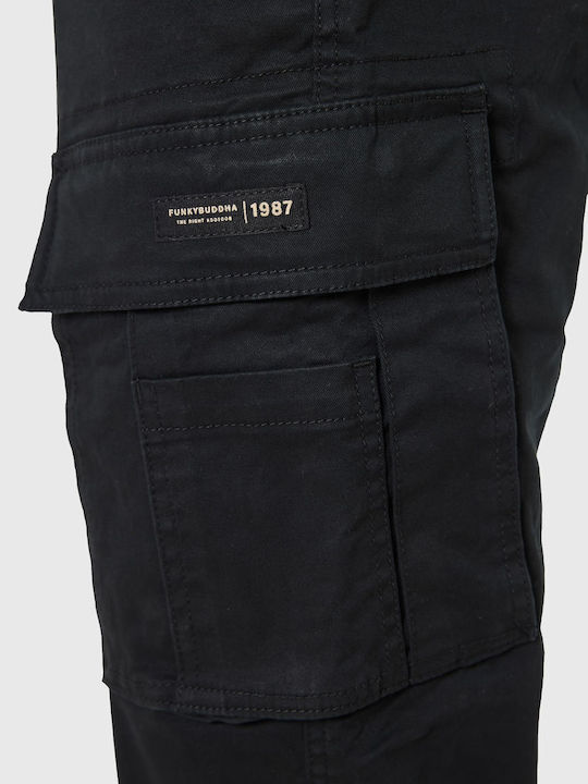 Ανδρικό παντελόνι cargo της εταιρίας Funky Buddha σε μαύρο χρώμα με πλαϊνές τσέπες για casual εμφανίσεις.