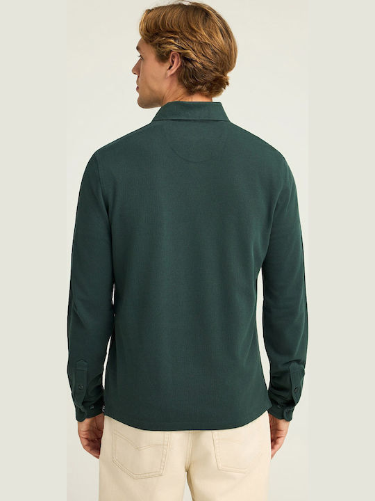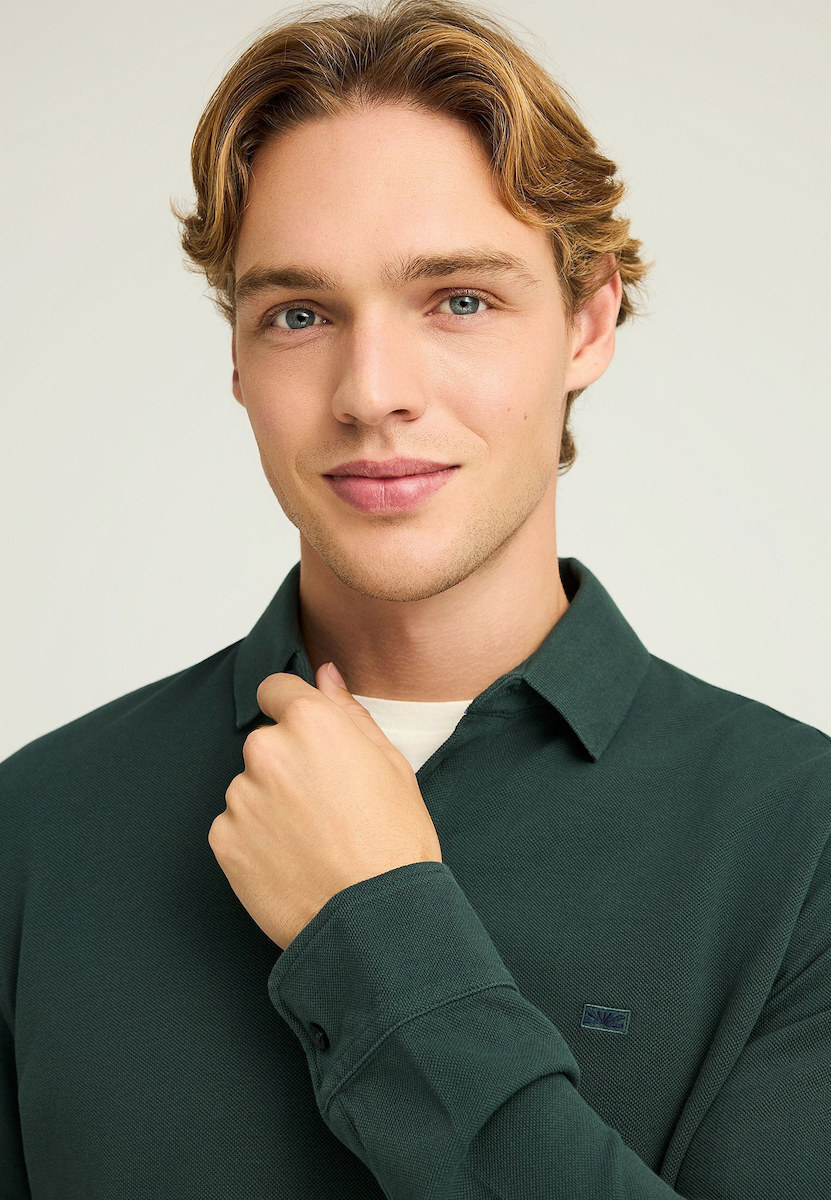 Funky Buddha Polo Long Sleeve Blouse Pine Green FBM012-001-11