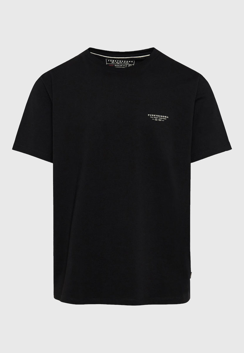 Τακτοποιημένη εφαρμογή, στρογγυλός λαιμός, κοντομάνικο σχέδιο, λογότυπο στο στήθος, branded ετικέτα πάνω από το τελείωμα. Κατασκευή από 100% βαμβάκι.