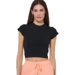 Body Action Women’s Cropped Stretch Jersey T-Shirt Black 051625-01-01