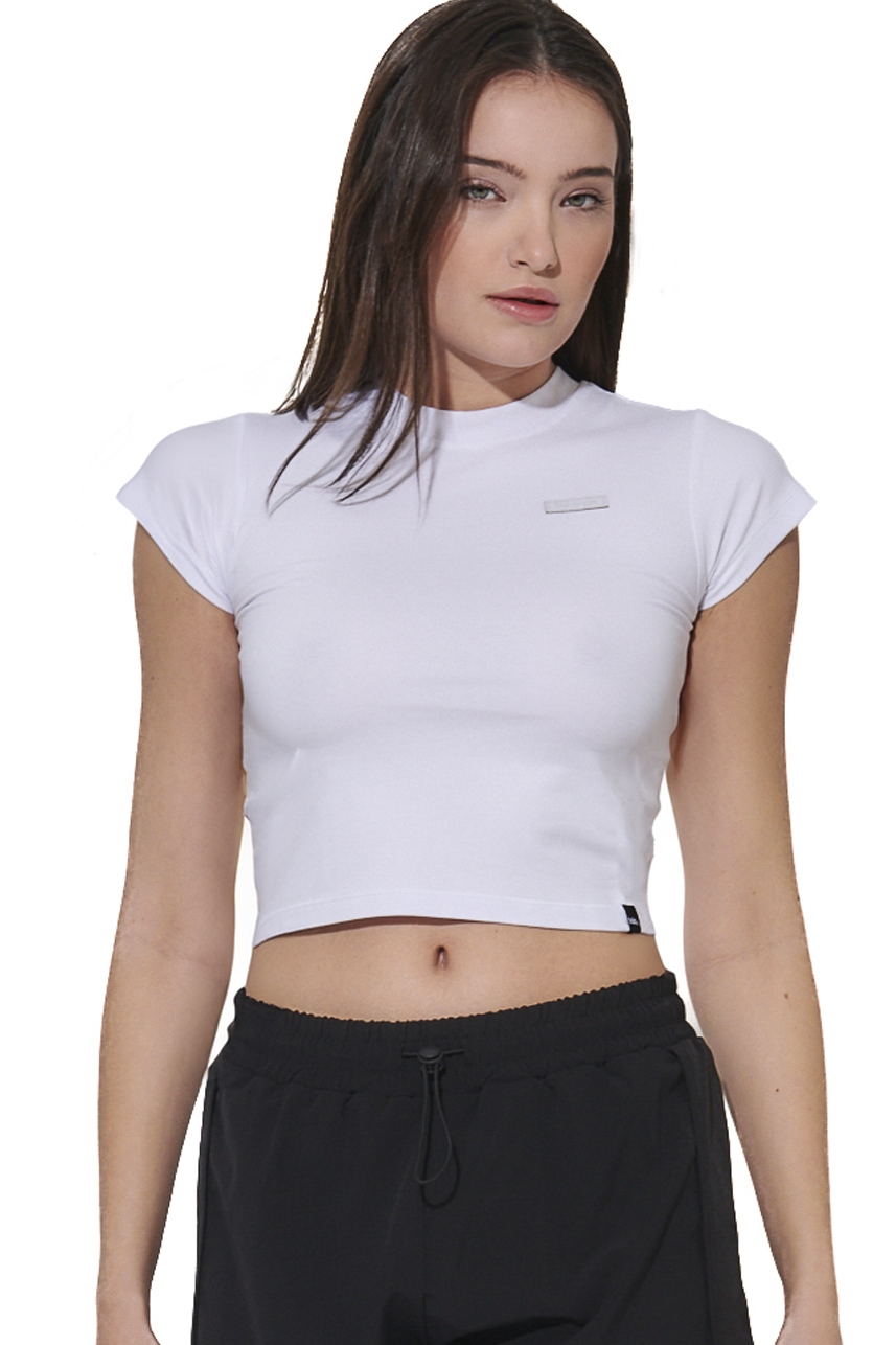 Body Action Women’s Cropped Stretch Jersey T-Shirt White 051625-01-02