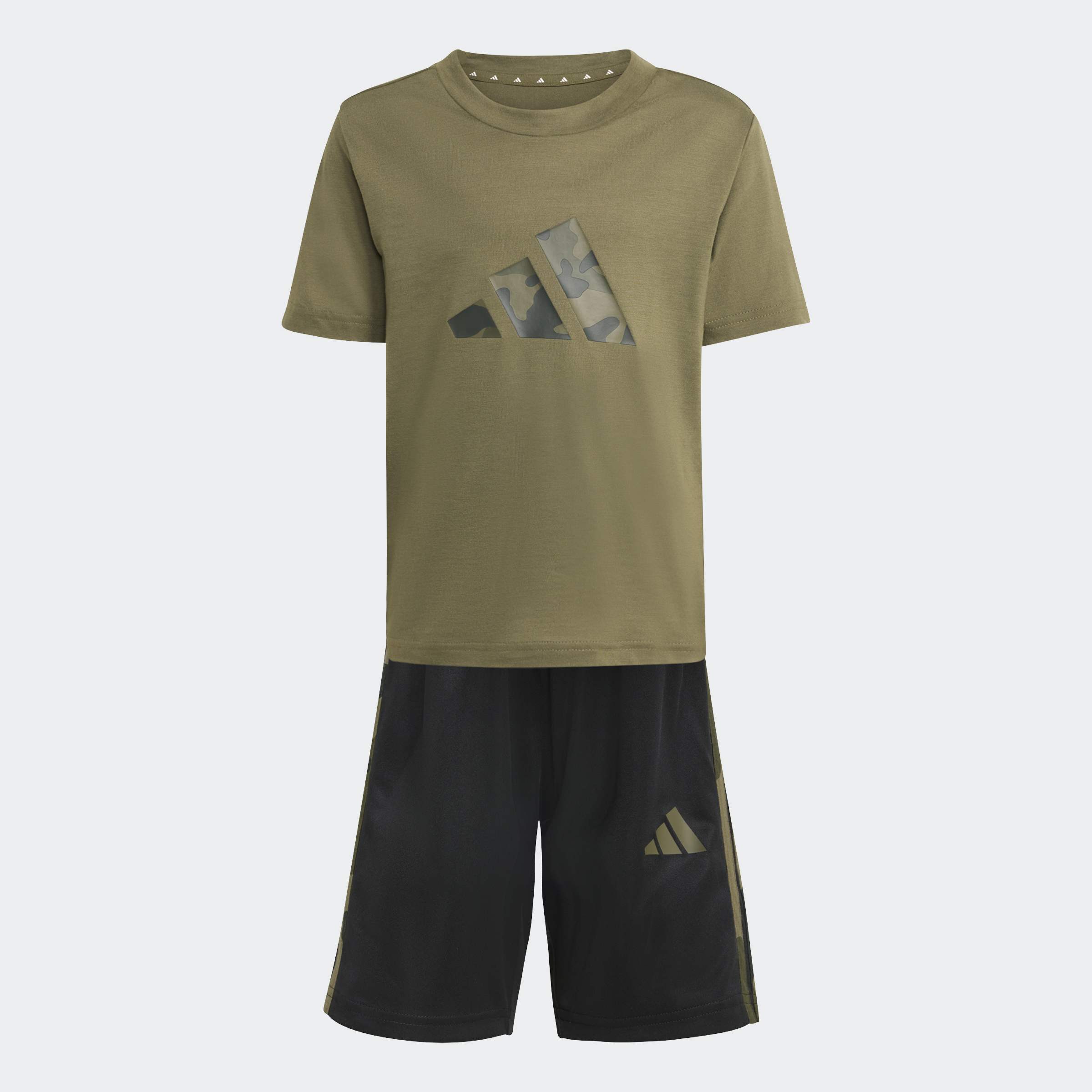 Ξεκινήστε το παιχνίδι τους με το σετ adidas Train Essentials Camo με σχέδιο για παιδιά. Αυτή η ευέλικτη στολή προετοιμάζει τους νεαρούς αθλητές για οποιαδήποτε δραστηριότητα, οποιαδήποτε στιγμή. Το σετ περιλαμβάνει ένα κοντομάνικο μπλουζάκι με στρογγυλή λαιμόκοψη και ένα ασορτί αθλητικό σορτς. Ελαφρύ και εύκολο να φορεθεί στο σχολείο, στο πάρκο ή οπουδήποτε αλλού, και τα δύο κομμάτια διαθέτουν ένα δροσερό μοτίβο camo με τις τρεις χαρακτηριστικές ρίγες της adidas και το λογότυπο 3 Bar. Το CLIMACOOL απομακρύνει και διαχέει τον ιδρώτα για δροσερή, στεγνή και χωρίς περισπασμούς απόδοση. Το CLIMACOOL βοηθά τα παιδιά να διαχειρίζονται τον ιδρώτα με υλικά που απομακρύνουν και διαχειρίζονται τον ιδρώτα γρήγορα. Οι ίνες του που στεγνώνουν γρήγορα προσφέρουν μια αίσθηση φρεσκάδας στο δέρμα.