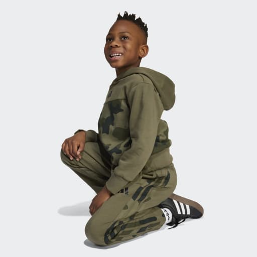 Αυτό το σετ της adidas είναι φτιαγμένο για δραστήρια παιδιά. Η φλις κατασκευή τους κρατά άνετους εν κινήσει, ενώ το τύπωμα παραλλαγής προσθέτει μια διασκεδαστική ανατροπή στις καθημερινές τους περιπέτειες. Συνδιάστε το hoodie με κουκούλα με το παντελόνι φόρμας σας και με τα άλλα αγαπημένα ρούχα για αβίαστο αθλητικό στυλ.